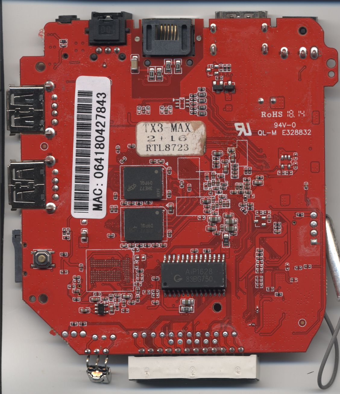 La Tv box Tanix possède une interface bluetooth fournie par le chip Realtek RTL8723BS, le même que pour la wifi, monté dans un module. Vous trouverez une pseudo spécification en ref10. Il semble que la bluetooth est géré par son propre processeur, on peut donc s'attendre à trouver un firmware spécifique pour la bluetooth. La communication se fait par l'interface HS-UART connectée à l'interface série /dev/ttyAML1 du processeur Amlogic s905w.