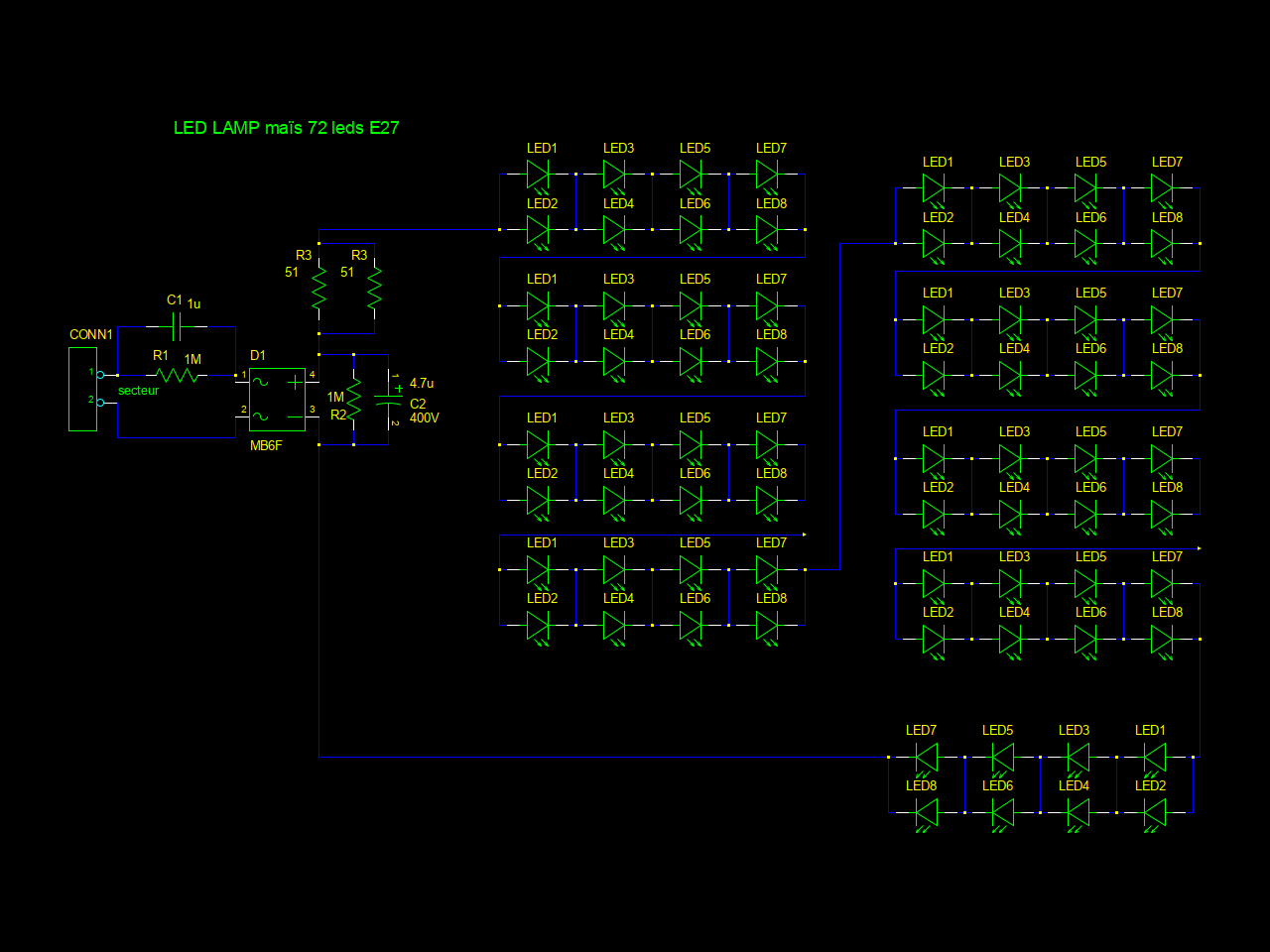 Il y a 9 groupes de 8 leds avec 2 leds en parallèle. 8 groupes forment le cylindre et le dernier groupe est en bout.