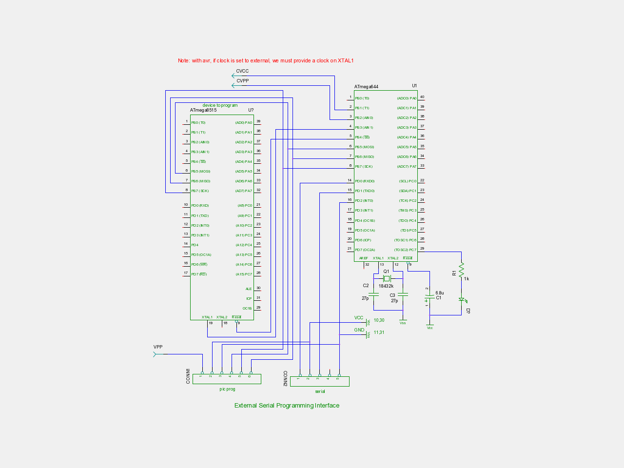 External programming is a feature that let users, that are afraid at the view of the pgrm3 schematics and do not need of parallel programming, to program devices in serial programming mode and serial communication.